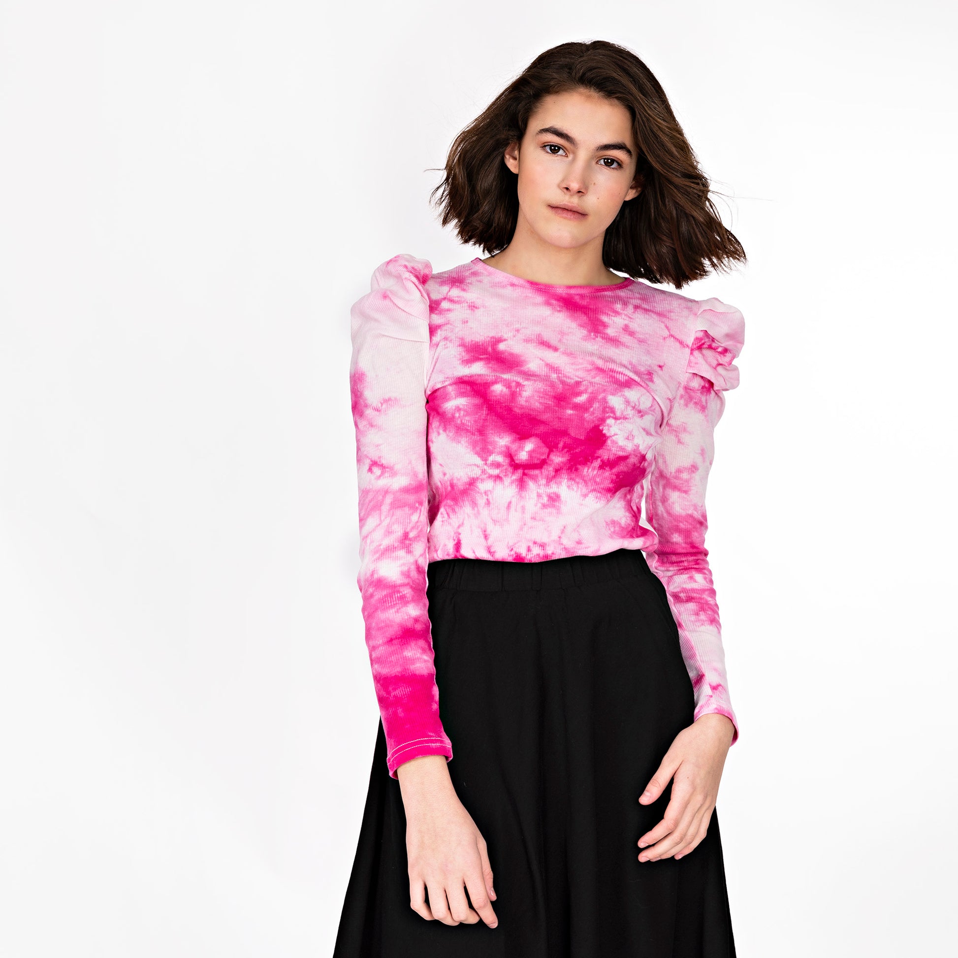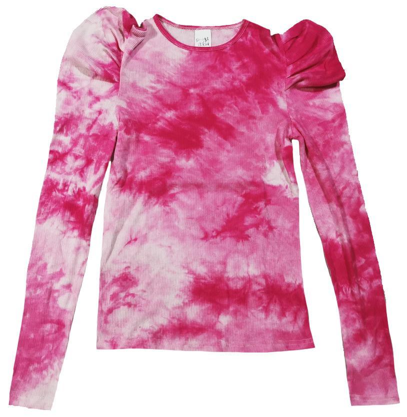 Pink Tie Dye Ruched Shoulder T-Shirt